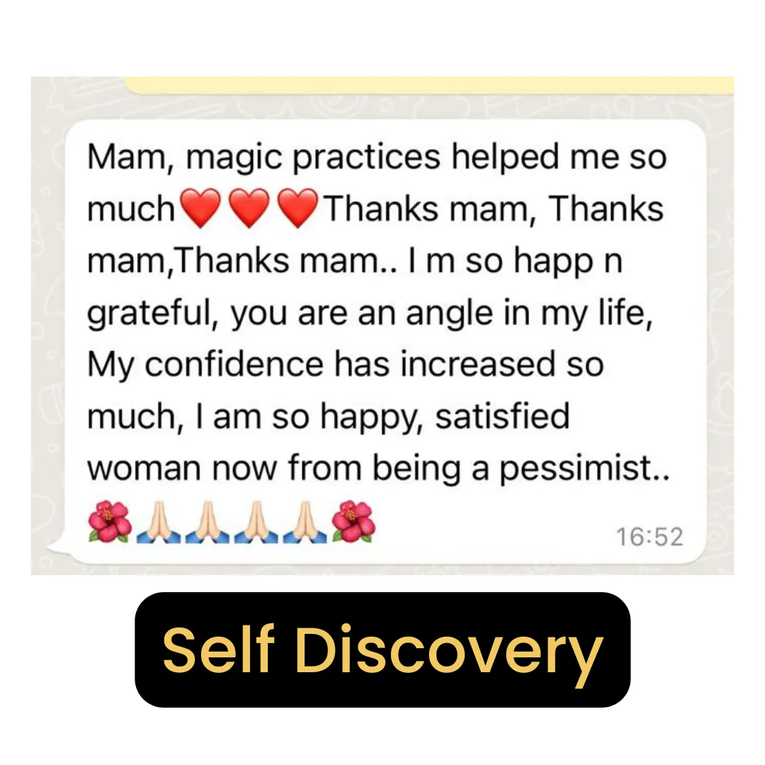 Mam, magic practices helped me so much Thanks mam, Thanks mam. I m so happy grateful, you are an angel in my life, My confidence has increased so much, I am so happy, satisfied woman now from being a pessimist..
