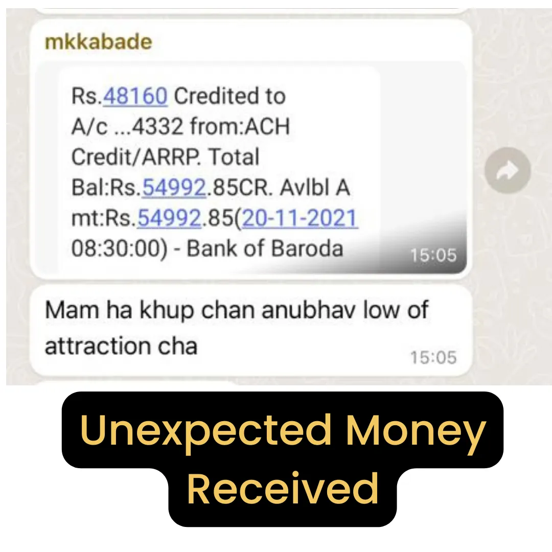 Hello Mam, I have manifested money for my new home.. My father has alloted me 1 CR from his ancestryand it was so unexpected.. Law of attraction works so amazingly... so happy Mam.